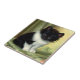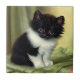 Ceramic Tile featuring a darling tuxedo kitten! This black and white kitten cutely poses on green and red blankets. A wonderful gift for cat lovers and Victorian art enthusiasts!
