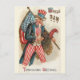 Send your Thanksgiving Greetings in style with this vintage USA illustration of Uncle Sam decked out in red, white and blue, carrying an American Flag and holding a turkey.