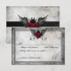 Vintage Urban Tattoo Winged Heart RSVP Cards. A really nice reception RSVP card that is vintage in style with a black and white monotone background that has subtle overlays of flowers. On top of this reception card is a beautifully designed Tattoo Style Winged Heart that is coloured red in teh centre and the wings are shades of gold and yellow. Truely stunning! Please contact me via my store link if you need help with customisation or a different colour scheme!