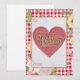 This charming card encapsulates the timeless essence of romance through a delicate gingham frame that harks back to a bygone era. A centre stage is claimed by a woven patch heart, symbolising the enduring nature of true love. As you gaze upon the white fabric backdrop, reminiscent of a treasured heirloom, vintage flowers gracefully accentuate the scene, adding a touch of classic elegance. 'Love in Every Thread' speaks volumes, celebrating the intricate details and enduring commitment that define lasting relationships.
