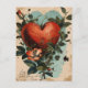 This vintage Valentine's Day postcard features intricately illustrated red roses and delicate hearts, creating a timeless romantic ambiance. A faded, sepia-toned background enhances its antique charm. In one corner, an old-fashioned love letter with elegant script adds a touch of nostalgia, capturing the essence of enduring love through the artistry of a bygone era.