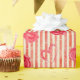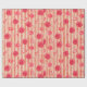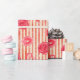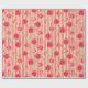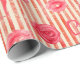 Shows a vintage style striped background, with vibrant roses, hearts and lip prints.