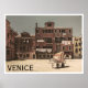Venice square. Cart with boxes in the middle of old Italian square with colourful buildings in Venice, Italy. Postal, delivery service in Italy. Boxes left alone.