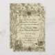 Charming wedding invitation in a vintage design featuring gold and green background image of vintage vines and faded chevrons--and unicorns! Vintage Italian illustration of myrtle tree. Shown on metallic ice paper to give it a nice fancy shine.