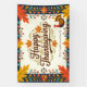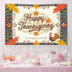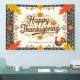 Celebrate the season with our Happy Thanksgiving tapestry, a visual feast that sets the stage for cherished memories. The design features a captivating border of autumn leaves and flowers in a rich palette of burnt orange, sunny yellow, deep teal, and cranberry red. At its heart, the phrase "Happy Thanksgiving" swirls in an elegant, inviting script. Below, a cheerful turkey stands guard, its plumage a vibrant echo of the surrounding leaves, while a customisable field awaits your family name. This isn't just a banner; it's the backdrop to your holiday story.