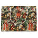 This is a classic holiday pattern filled with old-fashioned Christmas charm. It features repeating pictures of Santa Claus surrounded by green pine wreaths and shiny gold and red ornaments. The design also shows little children dressed in vintage red coats carrying gifts and baskets. The background is decorated with pinecones and winter greenery, creating a cozy and traditional festive look.