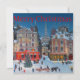 Vintage Victorian Christmas Village. "Merry Christmas" greeting in red.