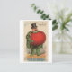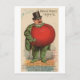 This postcard is a reproduction of a vintage Victorian trade card showing a man with the body of a tomato, wearing a top hat and carrying a walking stick.