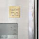 It was a bit smaller than expected, but I was too excited to check dimensions. The product itself send well printed though the grey text is a bit paint. Magnet worked perfectly on my fridge.