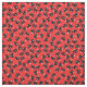 A bold red fabric with a repeating pattern of black and white vintage video cameras, this fabric design suits all sorts of projects from clothing to accessories.