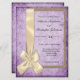 This exquisite wedding invitation is designed to transport your guests to a bygone era of elegance and romance. Featuring a distressed violet paper background reminiscent of aged parchment, the invitation exudes a vintage charm that is both timeless and sophisticated. Each invitation is nestled within a beautiful wooden frame, adding a touch of rustic warmth and natural beauty. The finishing touch is a delicate white silk ribbon that ties the design together with a touch of ethereal grace. There is also a pair of wedding bells on the back of the invitation. Whether you're planning a rustic-theme wedding, country wedding, barn wedding, or simply a stylish, more simple celebration, our Vintage Violet Rustic Elegance Wedding invitation with its charming rustic and shabby-chic appeal, will definitely fit the bill.