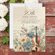 Elegant, vintage 90th birthday party invitation for women designed with a violin sitting among dusty blue and cream-coloured flowers and greenery. Personalise by adding the name of the guest of honour, her age, and her party information. Contact us for help with customisation or to request matching products.