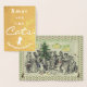A funny gold foil Christmas card for cat lovers and fans of British feline artist Louis Wain which I've titled 'Xmas with the Cats, the Purrfect Christmas.' Inside is his hilarious vintage illustration of a family gathering of cats and kittens having fun (mostly) beside the Christmas tree opening presents and playing with their new toys. Bottom left and right I've added a vintage illustration of a tabby serving a Christmas pudding on a platter and a border of holly on a soft beige background which you can change to suit. Along the top is the greeting Merry Christmas from Pumpkin Pie, Sugar Plum and Sweet Pea xxx. Here you can change the names to suit your family's and cats' names! On the back is the word Purrfection!