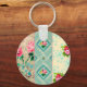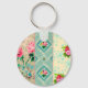 Sweet blues and pinks vintage wallpaper collage keychain