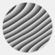 This sheet of round stickers features a digitally created series of black and white wavy lines that appear to move like waves like an optical illusion.