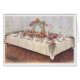 Vintage illustration food and beverages image featuring a wedding banquet table set for dinner, decorated with flowers and candles and ready for the party.