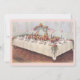 Vintage illustration food and beverages image featuring a wedding banquet table set for dinner, decorated with flowers and candles and ready for the party.