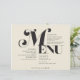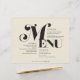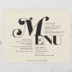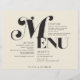 These vintage style 11" x 8.5" wedding dinner paper sheet menus black lettering with a stylised "Menu," in large black letters on a cream background. The menu has placeholders for 2 appetizers, 2 entrees, and 2 desserts and the wedding couple initials.