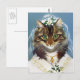 This beautiful vintage cat card is based on a British postcard design by the artist GL Barnes dating from around the early 1900's. The illustration is of a young female cat dressed in a very grand wedding gown complete with floating white veil. Her head dress has little yellow and white flowers and she wears an angel necklace. The tabby cat's wedding gown is trimmed with a gilt floral brocade. Our nervous bride with brilliant gren eyes is shown against a blue sky background that has an almost heavenly light. The card would be perfect for lovers of vintage cat art, cat owners and brides to be! Postcards are perfect for framing and are a cheap and chic alternative to more expensive poster prints.