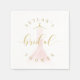 Elegant, stylish, and trendy bridal shower napkin for the bride-to-be. The design features our hand-painted chic, elegant, and modern sheer white and pale blush pink wedding dress gown. Soft flower lace details and sparkling emblements on the wedding dress create a beautiful, sophisticated, and luxurious look. A beautiful script style handwriting typography "Bridal" in faux gold. The blush pink, gold and white creates a trendy, shabby chic, and vintage style look. All illustrations contained in this elegant wedding dress bridal shower napkin are hand-drawn original artwork by Moodthology.