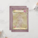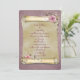 Vintage scroll with pink roses, ivy and pearl bouquet for wedding invitation.