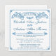 This pretty blue wedding announcement is perfect for any traditional, formal, rustic, or vintage wedding. The scroll banner and frame have a leaf motif. The back has a place for your monogram. Customise with your own text. Please check my store for different colours and related items that match this card. Don't see the colour you like? Contact me. Original Illustration by pj_design / jammydesign.