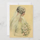 Vintage illustration Victorian wedding portrait design featuring the bride in profile. The beautiful bride is in her wedding gown with veil holding a bridal bouquet of white flowers.