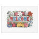 Vintage illustration featuring the word WELCOME surrounded by a variety of garden flowers. Originally created by Currier & ives in 1873.