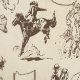 This wallpaper has a vintage wild west pattern full of rodeo cowboys on horses roping, riding and bronc busting.