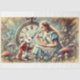 Venture into a magical scene where Alice and the White Rabbit carefully tend to timepieces among mushrooms in their forest workshop. Each pocket watch and clock is rendered with exquisite detail in classic vintage style. Delicate ferns and woodland flowers frame the whimsical collection of timekeeping treasures. The warm traditional colour palette evokes timeless storybook charm ideal for decoupage artistry. Perfect for mixed media artists who love detailed fantasy illustrations.