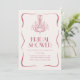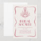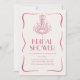 This whimsical vintage bridal shower invitation features an elegant, ornate frame around the edges, reminiscent of intricate lacework. At the top, a beautifully illustrated vintage chandelier dangles gracefully, adding a touch of old-world charm and opulence. In the centre, framed by soft pastel hues, are the shower details, ready for the user to personalise with the bride’s name, the date, location, and any special notes. The overall design blends romance and nostalgia, evoking a timeless celebration of love with a hint of whimsy and elegance.
