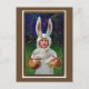 This little girl is dressed in a white bunny suit and is carrying two baskets of pastel coloured Easter Eggs. Image of Vintage Easter Clipart with a custom medium brown border.