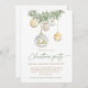 Set the tone for a graceful holiday gathering with this stunning Christmas invitation showcasing gold and white glass ornaments hanging from festive greenery. The elegant script typography pairs beautifully with the soft watercolor details, making it ideal for upscale Christmas parties, cocktail evenings, or winter receptions.