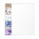 Notepad featuring a fluffy white kitten! The blue eyed kitten sits in a blue bowl with pink flowers. A purple flowered blanket is draped in front. A marvellous gift for cat lovers and Victorian art enthusiasts!