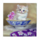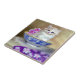 Ceramic Tile featuring a fluffy white kitten! The blue eyed kitten sits in a blue bowl with pink flowers. A purple flowered blanket is draped in front. A marvellous gift for cat lovers and Victorian art enthusiasts!