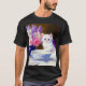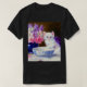 T-Shirt featuring a beautiful white kitten wearing a purple ribbon! This fluffy kitty poses next to a blue bowl and a vase of pink, purple, and white flowers. A marvellous gift for cat lovers and Victorian art enthusiasts!