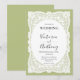 Pretty green background with faux lace overlay & elegant & modern typography and script. Beautifully romantic for any season wedding.
