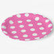 Paper party plates with a classic pattern of white polka dots on a hot pink background colour. You can change the background colour to your favourite and adjust the pattern size to your preference. Personalise these plates with a name or special message. It's a fun way to celebrate for anyone that loves pink and retro polka dots!