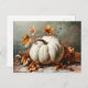The Vintage White Pumpkin Painting Postcard captures the essence of autumn with a beautifully detailed white pumpkin set against a rustic backdrop. The soft, muted tones and vintage style of the artwork make this postcard a charming piece for sending seasonal greetings or adding a touch of farmhouse elegance to your correspondence.
