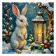 A charming vintage-style Christmas painting of a white rabbit illuminated by a soft glowing lantern. This gentle winter scene is full of nostalgic holiday warmth.