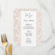 Menu Card is shown in the basic matte paper with a vintage white roses print with script and standard text in black.