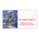 This is Christmas Holiday return address label design. This design feature is a gold handwritten font with scroll frame accents on a White Snow Glitter background with a rustic textured look. Custom return address text. Personalised address labels for all your mailings.