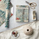 This wrapping paper has a repeating pattern of a festive winter scene.