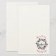 Stationery with a digital image of a painted illustration of a red church and steeple. A bright Christmas star shining overhead. Families out in front arriving for a church service. Winter snow covers the ground and rests on cute bushy pine trees. A red and grey Christmas wreath surrounds the image. Merry Christmas and Happy New Year written in curved text around the image.