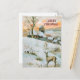 Vintage snow covered winter landscape with deer Christmas greeting holiday card
