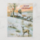 Vintage winter landscape with deer Christmas card
