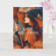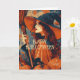 Cast a little Halloween magic with this elegant vintage witch card. Featuring a mysterious witch in a flowing orange and black gown and hat holding her broom, framed by a pumpkin background and intricate vintage details, this design captures the haunting beauty and charm of Halloween.