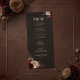 This vintage witchy floral wedding menu card features moody dark tones paired with elegant gold typography and romantic autumn-inspired florals. Designed for gothic, Victorian, and enchanted wedding themes, it adds a refined and atmospheric touch to your reception tables. Fully customizable text allows couples to showcase their curated menu while maintaining a cohesive, darkly romantic aesthetic. Perfect for formal dinners, candlelit receptions, and moody wedding décor. A timeless statement piece that elevates your wedding tablescape with subtle magic.