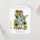 The little girl Dorothy with her blue gingham dress and picnic basket is surrounded by beautiful sunflower flowers.