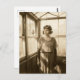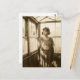 Vintage woman in a greenhouse sepia photo postcard